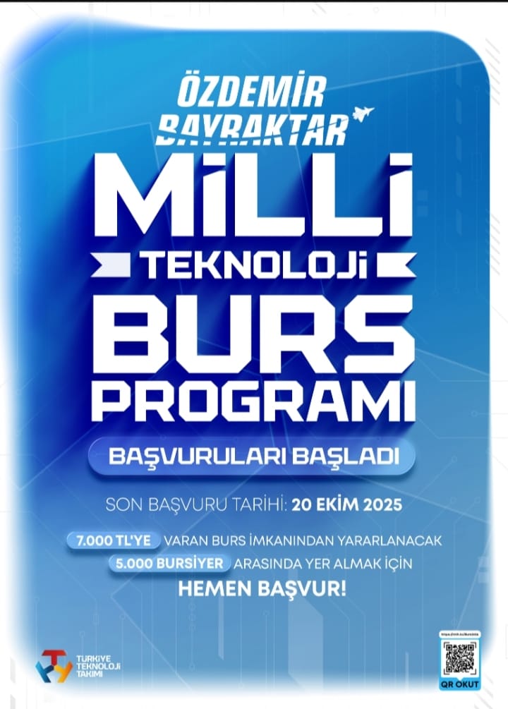 📢 Değerli Öğrencilerimiz için Özdemir Bayraktar Milli Teknoloji Burs Programı başvuruları başlamıştır.